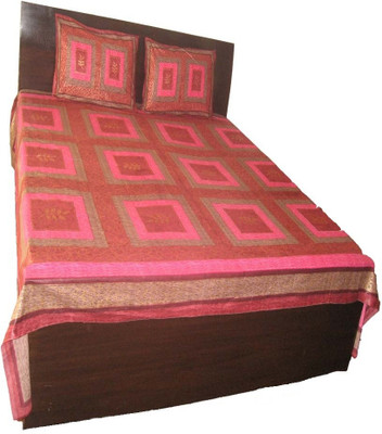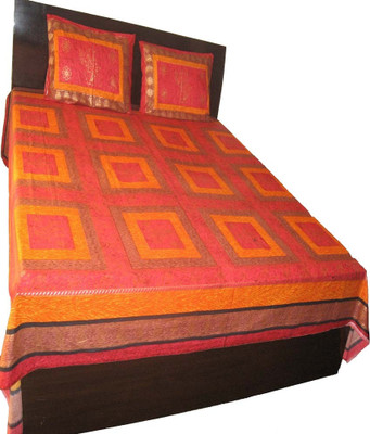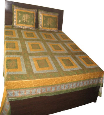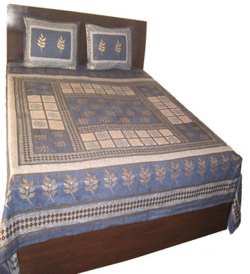 Double bedsheet with beautiful golden print all over. This product represents traditional craftsmanship of Rajasthan. This bedsheet set is in bright color to enhance your d?cor. The bed sheet comes with 2 matching pillow covers.