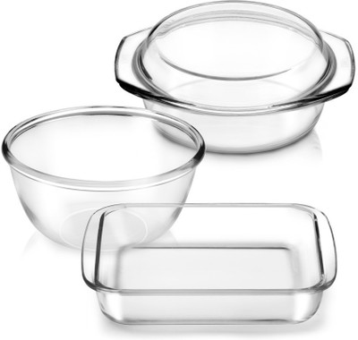 Treo Universal Borosilicate Bakeware Are Made With High Quality Glass And Have A Premium Finish. These Products Are Manufactured With Precision And Will Add Style To Every Occasion! Ideal For Baking Dishes In Microwave And Oven. The Universal Borosilicate Bakeware Comes In A Set Of 3 Pieces That Contains Square Dish, Round Casserole And Mixing Bowl Of 1000 Ml Each.