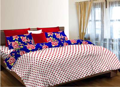 Search Westa Home Polycotton Geometric Double Bedsheet 2 Pillow Covers, 1 Bedsheet, Red||White on Amazon