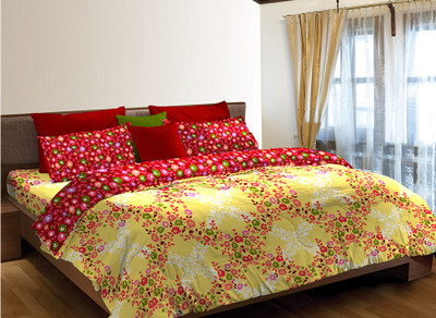 Search Westa Home Polycotton Floral Double Bedsheet 2 Pillow Covers, 1 Bedsheet, Red||Yellow||Green on Amazon