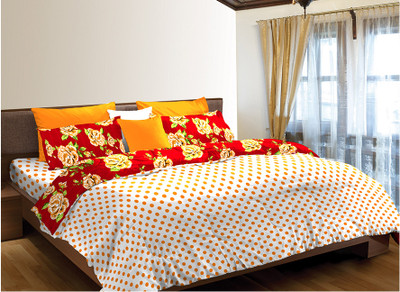 Search Westa Home Cotton Floral Double Bedsheet 2 Pillow Covers, 1 Bedsheet, White||Orange on Amazon