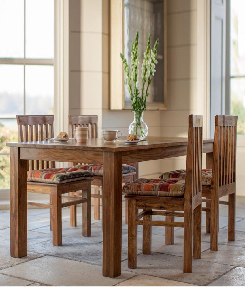 Made of Sheesham Wood Knockdown Assembly 3 Months Warranty 4 Seater Installation in Select Cities only* Colour: Honey Medium Type: 4 Seater Dining set - 4 Chair and 5ft Table Assembly Required: Yes Dimensions: Table -145 x 85 x 76 cm, Chair 45 x 45110 cm Brand: LifeEstyle Material: Sheesham Wood