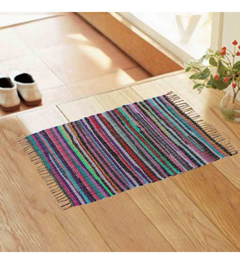 You must have heard about recycled paper all the time and now we bring you the recycled fabric in the form of his beautiful rug which has been brought together by carefully stitching different colours of stripes of recycled fabric together. Azaani Cheerful Multi-coloured Chindi Rug is an environment friendly rug and can be used for a variety of purposes like floor mat, yoga mat, bedside runner or even a floor rug. The multi colours can be added to any room with any theme as this rug will match perfectly with any rug. The rug is very durable and attractive.