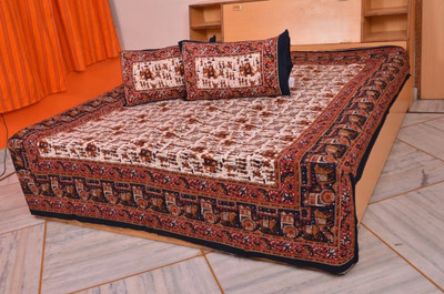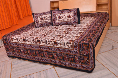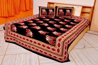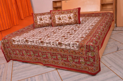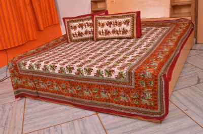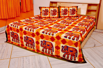 Bedsheet Bazaar Rajasthani Sanganeri Elephant Print Multicolor Cotton Double Bedsheet With 2 Pillow Cover
