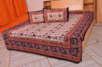 Bedsheet Bazaar Rajasthani Sanganeri Dandiya Print Multicolor Cotton Double Bedsheet With 2 Pillow Cover.