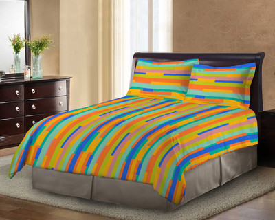 Bombay Dyeing Cotton, Polyester Checkered Double Bedsheet 1 Double Bedsheet, 2 Pillow Covers, Orange||White||Blue- Flipkart Home Decor & Accessories Online