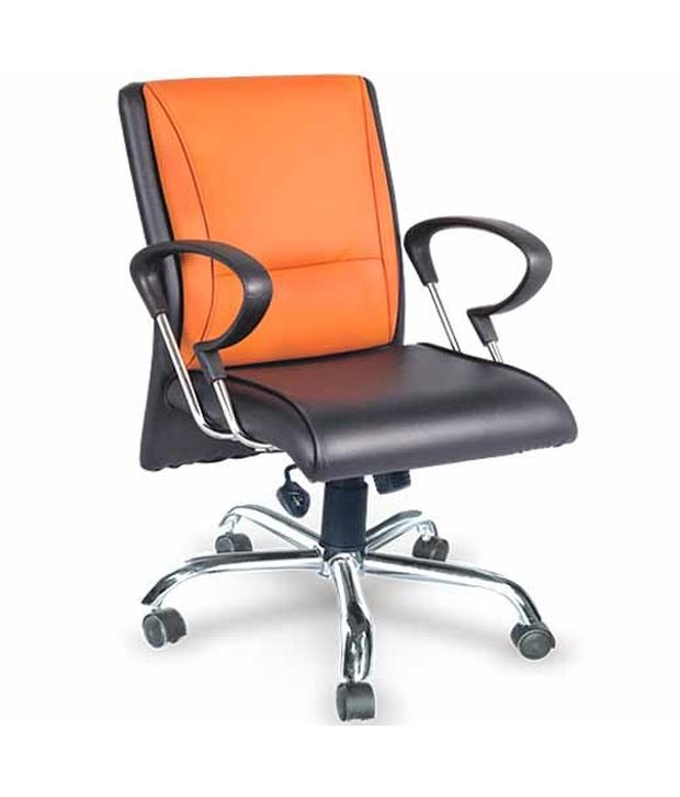 Easy to use, store Chair Type: Exclusive Chair Chrome Base Leatherette Tapestry PU Crome Arms Brand: Emperor Chairs Made of strong, sturdy and durable material Assembly required: Yes Colour/Design: Back-Orange Leatherette & Seat-BLACK Leatherette Perfect for home, office or outdoor use Attractive looks Synchro Tilt Mechanism Gas lift Highly comfortable design Long lasting product Product Code: EFS 430 Medium Back Chair