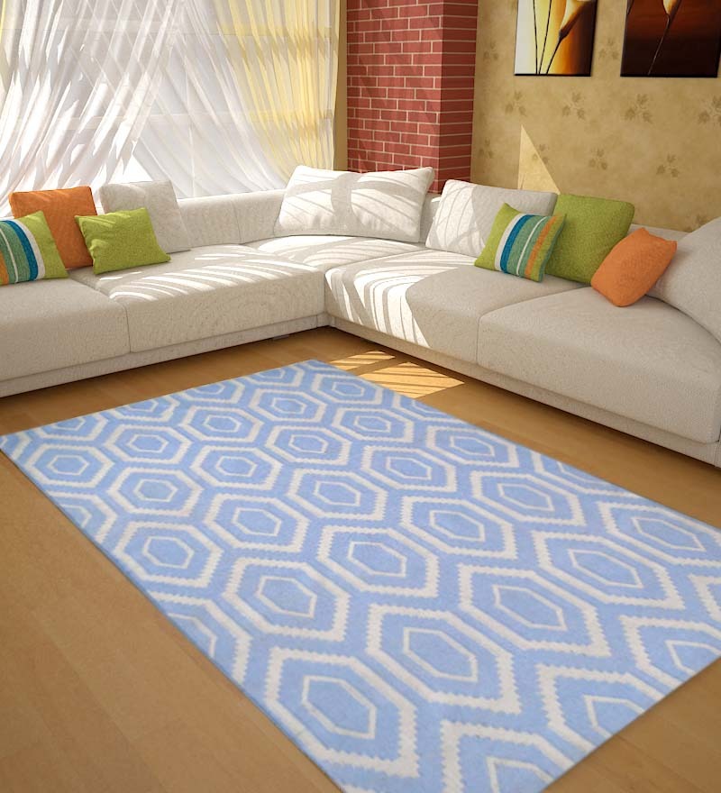 Imperial Knots Hand-Woven Sky Blue Hexagonal Design Flat-weave Rug- Pepperfry Home Furnishings - Discount Coupons