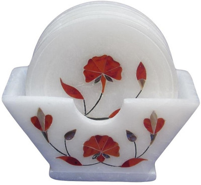 Artist Haat Round Marble Coaster Set White, Pack of 6- Flipkart Home Decor & Accessories Online