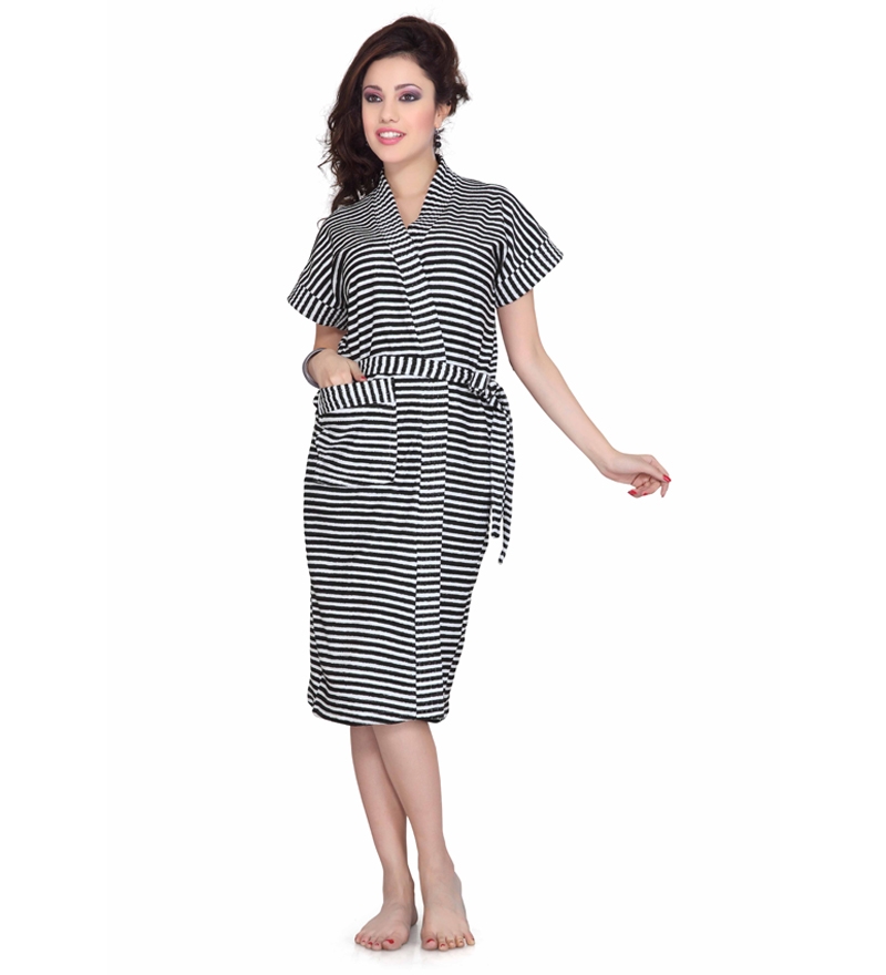 Sand Dune Striped Black Bathrobe- Pepperfry Online Shopping