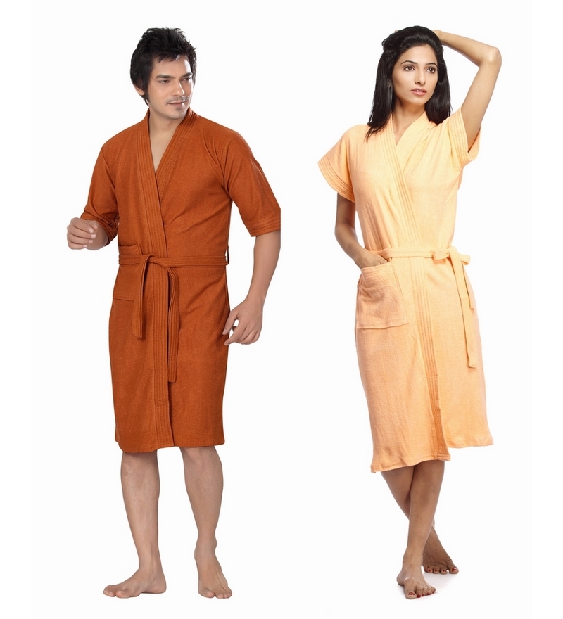 Sand Dune Turkish Rust & Peach Men & Women Bathrobe Combo- Pepperfry Online Shopping