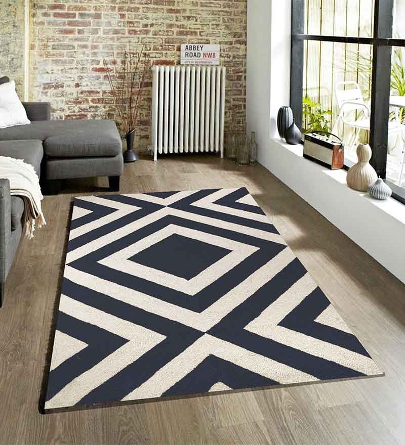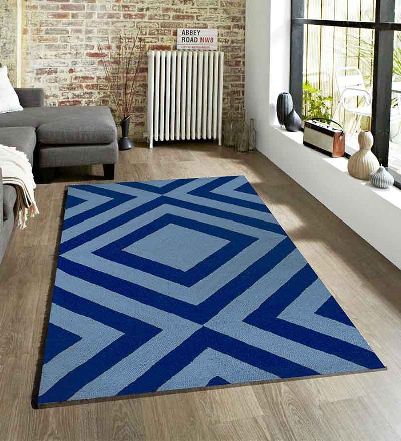 Sofiabrands Geometrical Dark Royal Blue Hand Tufted Rugs- Pepperfry Home Furnishings - Discount Coupons