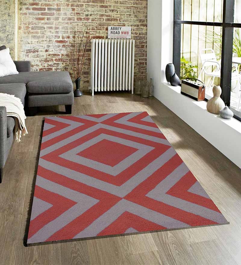 Sofiabrands Geometrical Dark Royal Red/ Grey Hand Tufted Rugs- Pepperfry Home Furnishings - Discount Coupons