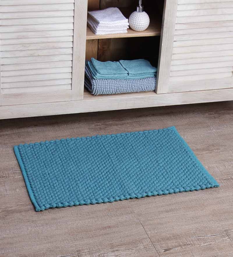 Water stains and footprints on bathroom floor are inevitable, but shower mats are the perfect solutions to soak up the dripping water off ones feet or tubs. Made up of cotton, this bath mat is soft and easy to maintain. Accentuate the look and feel at your home with this 20 inches X 30 inches bath rug. Its anti slip feature allows your feet to stay on them without skidding. The soft touch of this cotton under your feet will give a tickle that s soothing to your senses. After every shower this mat will be ready to welcome your soft feet. Its a must have for every bathroom.