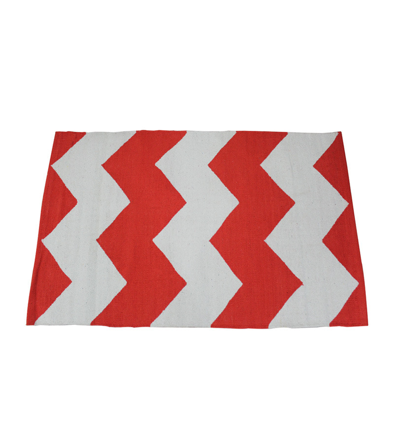 Tezerac Red and White Woven Rug- Pepperfry Home Furnishings - Discount Coupons