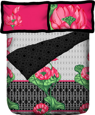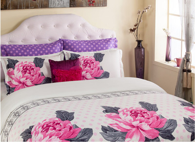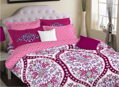 Portico New York Cotton, Satin Printed Double Bedsheet 1 Bedsheet, 4 Pillo w Covers, Pink||Purple||Grey- Flipkart Home Decor & Accessories Online