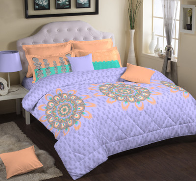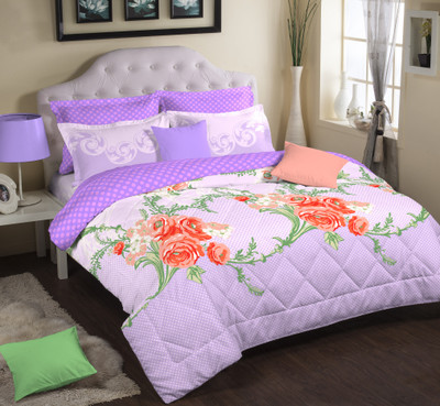 Portico New York Cotton, Satin Printed Double Bedsheet 4 Pillo w Covers, 1 Bedsheet, Lavendar||Purple||Green- Flipkart Home Decor & Accessories Online