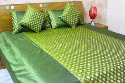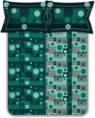 Search Dekor World Polyester Geometric Double Bedsheet 1 Bedsheet, 2 Pillow Covers, 2 Cushion Covers, Green on Amazon