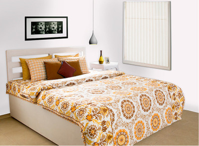 Home Bee Cotton Printed Double Bedsheet 2 Pillow Covers, 1 Bedsheet, Brown||Beige||White- Flipkart Home Decor & Accessories Online