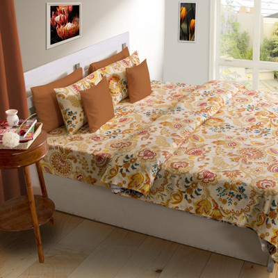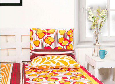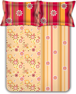 Home Bee Cotton Printed Double Bedsheet 1 Bedsheet, 2 Pillow Covers, Beige||Red||Orange- Flipkart Home Decor & Accessories Online