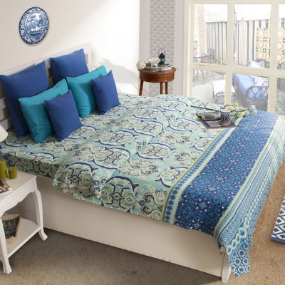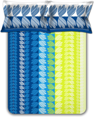 Home Bee Cotton Printed Double Bedsheet 1 Bedsheet, 2 Pillow Covers, Green||Blue||White- Flipkart Home Decor & Accessories Online