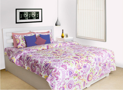 House This Cotton Floral Double Bedsheet 1 Bedsheet, 2 Pillow Covers, Purple- Flipkart Home Decor & Accessories Online