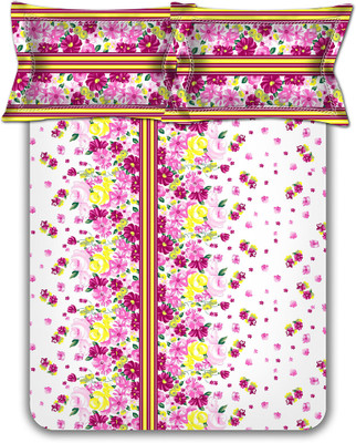 Home Bee Cotton Printed Double Bedsheet 2 Pillow Covers, 1 Bedsheet, Pink||White||Yellow- Flipkart Home Decor & Accessories Online