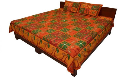 This is an exclusive floral print cotton double bed sheet. The greatest color combination of this bed sheet makes it the most elegant bedsheet. Prints of floral all over the bed sheet makes this bed sheet on of its kind. These are pigment prints which is printed on original cotton fabrics of 200 thread count fabrics. This can be use in a daily pupose also. We always work hard to provide our customers these types of exclusive bed sheets. Two pillow cases of same print is available with this bed cover. The attractive color combination of this bed sheet makes this bed sheet perfect gift for your love ones as well as it will always enhance your beautiful decor.