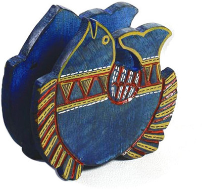 Add a ethnic touch to you tables with tis beautiful handmade Leaf Design Wood coasters Set; The three coaster set comes with three different colored fish for a unique touch;